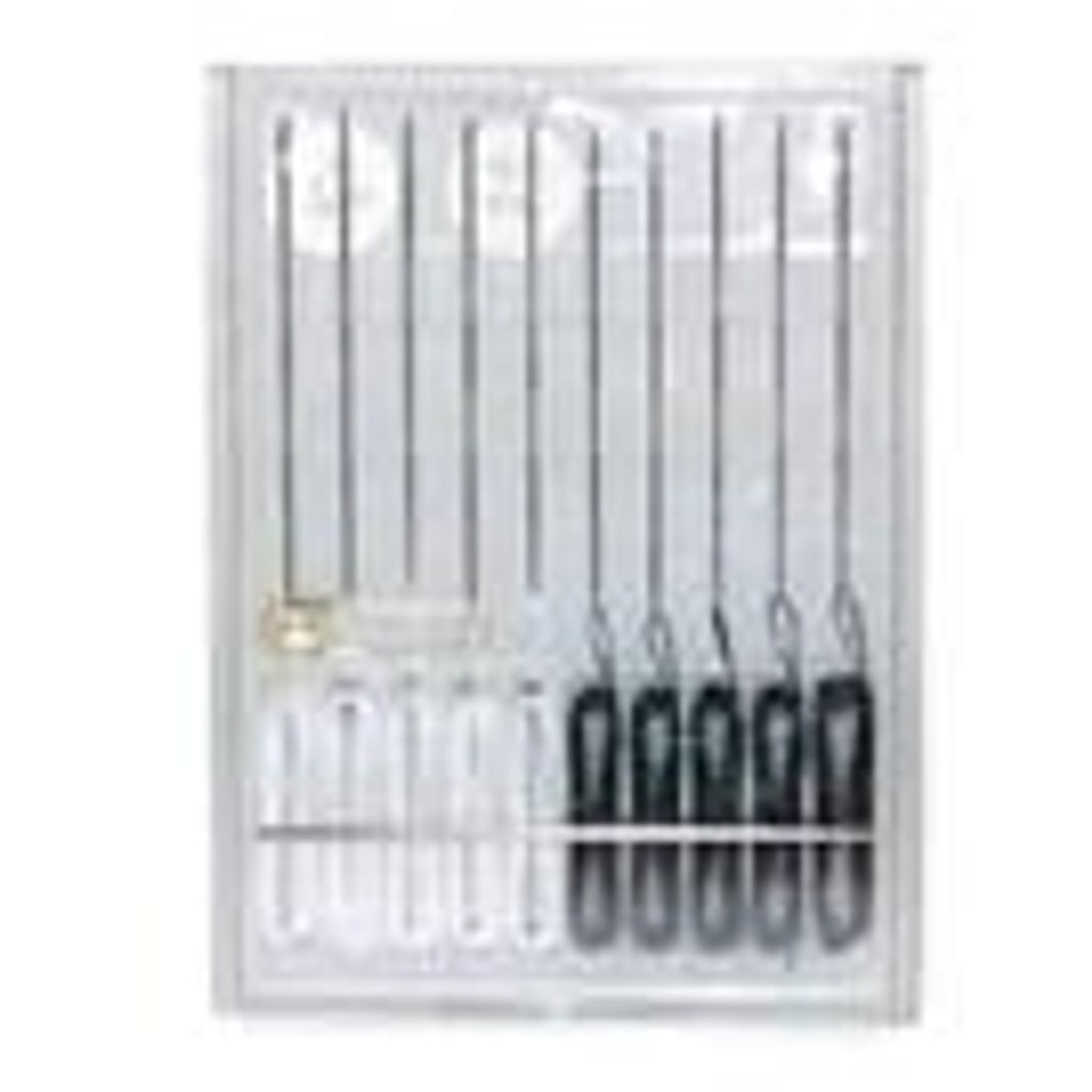 Contains 5 black and 5 white pre-threaded needles. Includes safety pin and two buttons. Perfect for costumers and fashion designers.